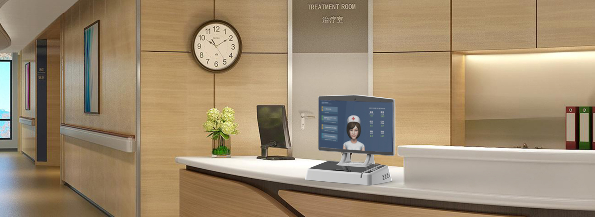 以智能终端为载体,在门诊问讯处、各层护士站、门诊科室侯诊处等地与患者进行语音交互了解患者需求,解答患者疑问。还可通过指纹识别、身份证识别等多种身份验证手段,确认患者身份信息,帮助护士对患者进行信息录入、确认。