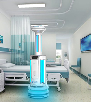 医院院内感染控制是以机器人为载体,集成紫外线、超干雾化过氧化氢、空气过滤三种消毒方式于一体,拥有有自主导航技术且自主移动。根据不同场景按需求设置消毒模式,全智能化操作,人机分离,保证人员安全。满足房间多,或者布局复杂的室内环境下自动、定时、高效、准确的消毒需求。机器人具有行人检测功能,在紫外线模式开启后,可实时监测到消毒环境中的人员情况,一旦检测到人员误入消毒区域,将自行关闭紫外线模式以保证人员安全。